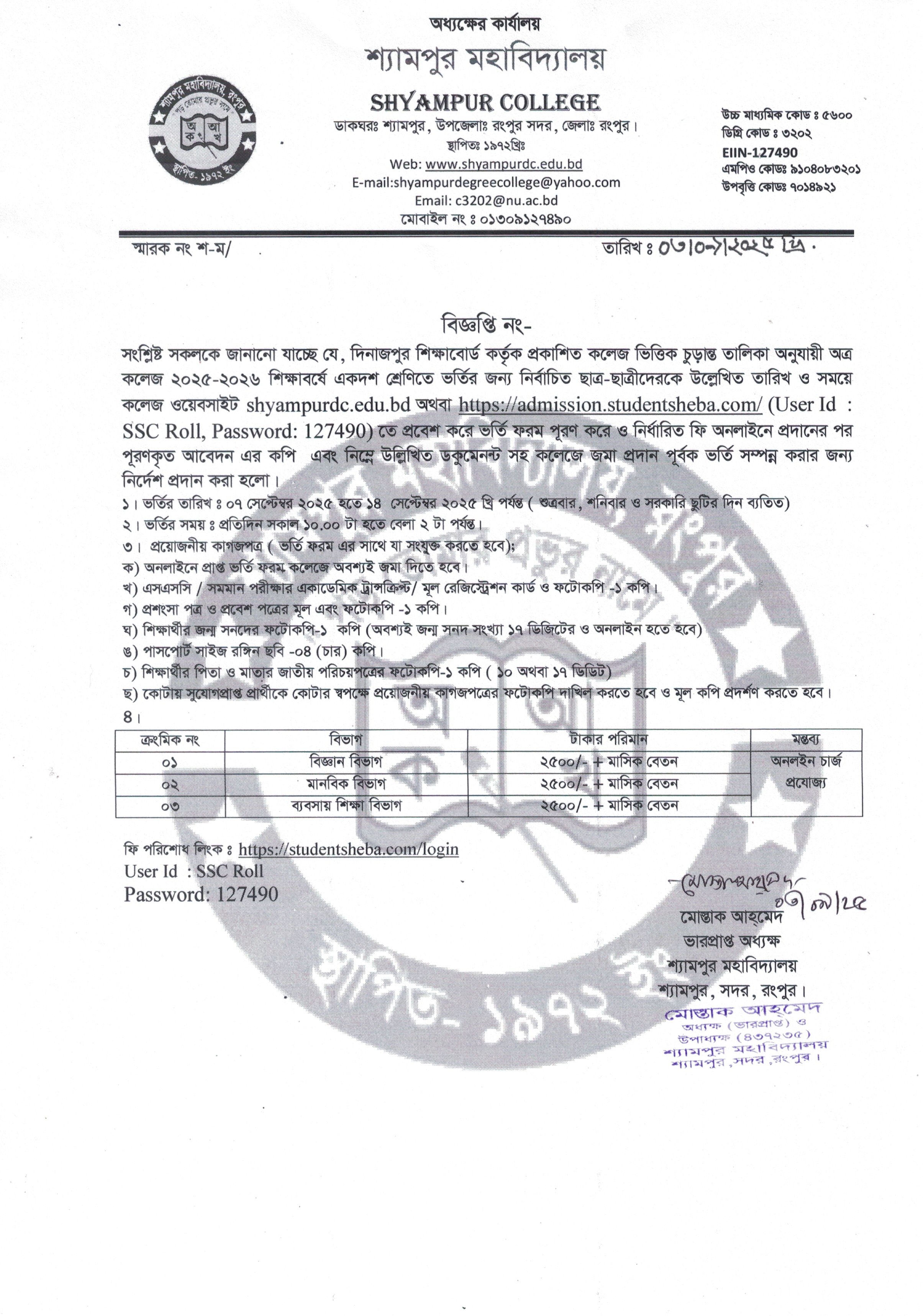 Copyright reserved Shyampur College, Rangpur. 2026